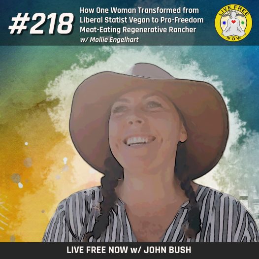 I’m excited to welcome Mollie Engelhart to the Live Free Now Show! Mollie is a total badass! Along with her husband, she runs Sovereignty Ranch and has transformed from a liberal environmentalist vegan into a radical regenerative meat-eating rancher and freedom advocate.